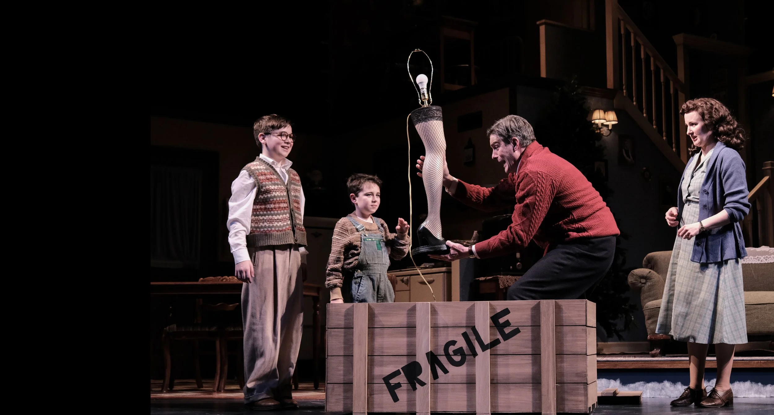 Gavin Lambert, Max Elmer, John Tufts and Kate Hamill in Syracuse Stage’s Production of “A Christmas Story.” Photo: Mike Davis