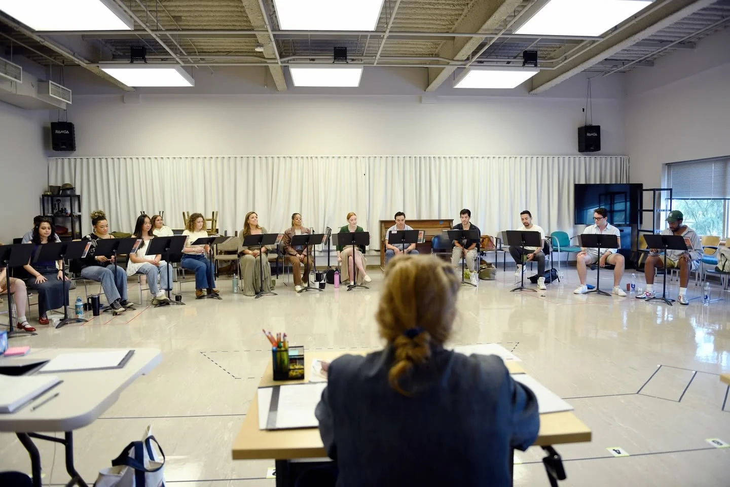 Cara Riechel and the company of “The Hello Girls” beginning rehearsals.