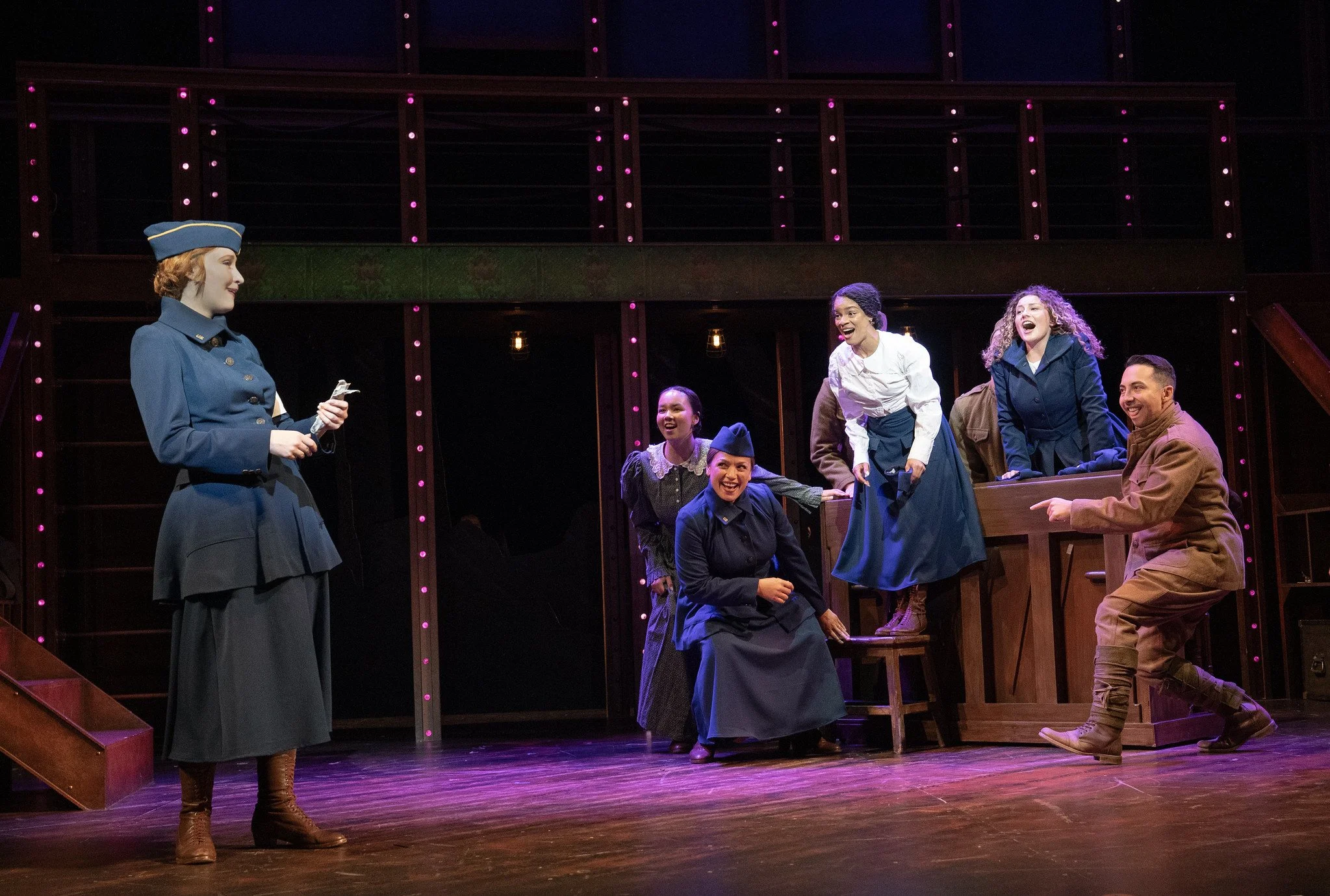 Chessa Metz, Alex Humphreys, Jamila Sabares-Klemm, Storm Lever, Sophia Anna O'Brien, and Andrew Mayer in the Syracuse Stage production of "The Hello Girls." September 9 - 28, 2026.