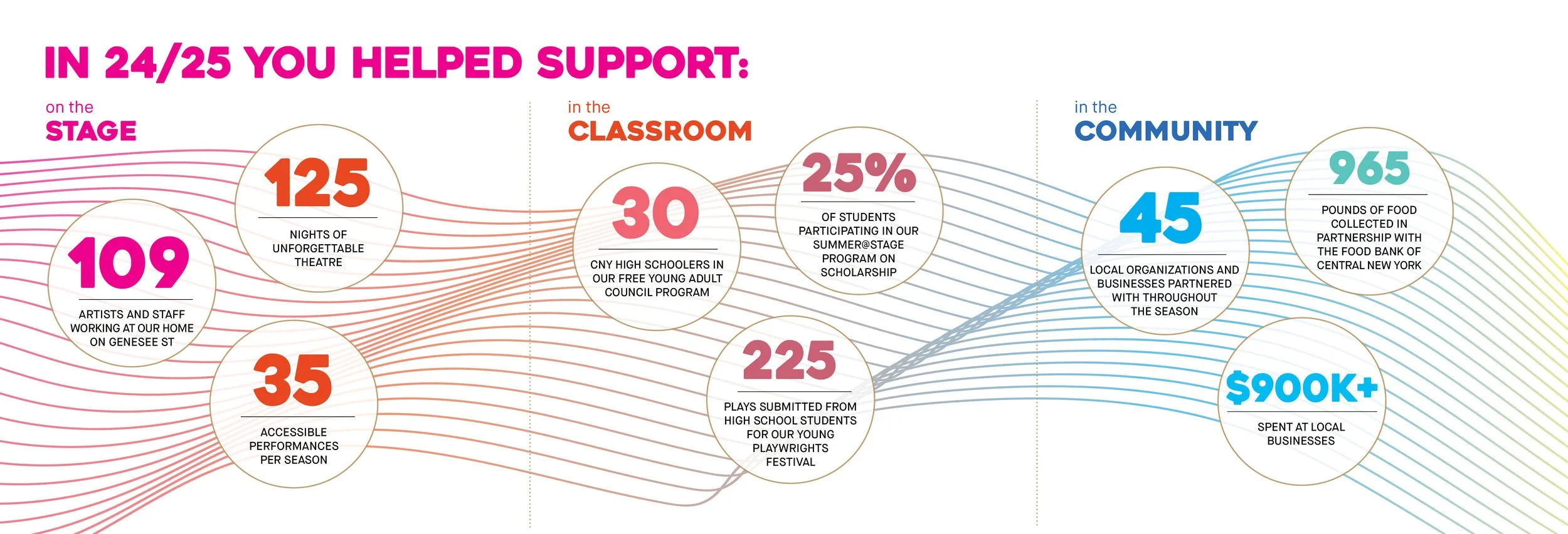 Thank you for believing in Syracuse Stage. Because of your investment in us, we continue to help shape the future of our Central New York community.